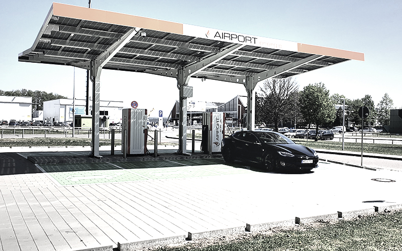 Versorgung der Ladestationen mit „Grünem Strom“ dank PV-Anlagen.