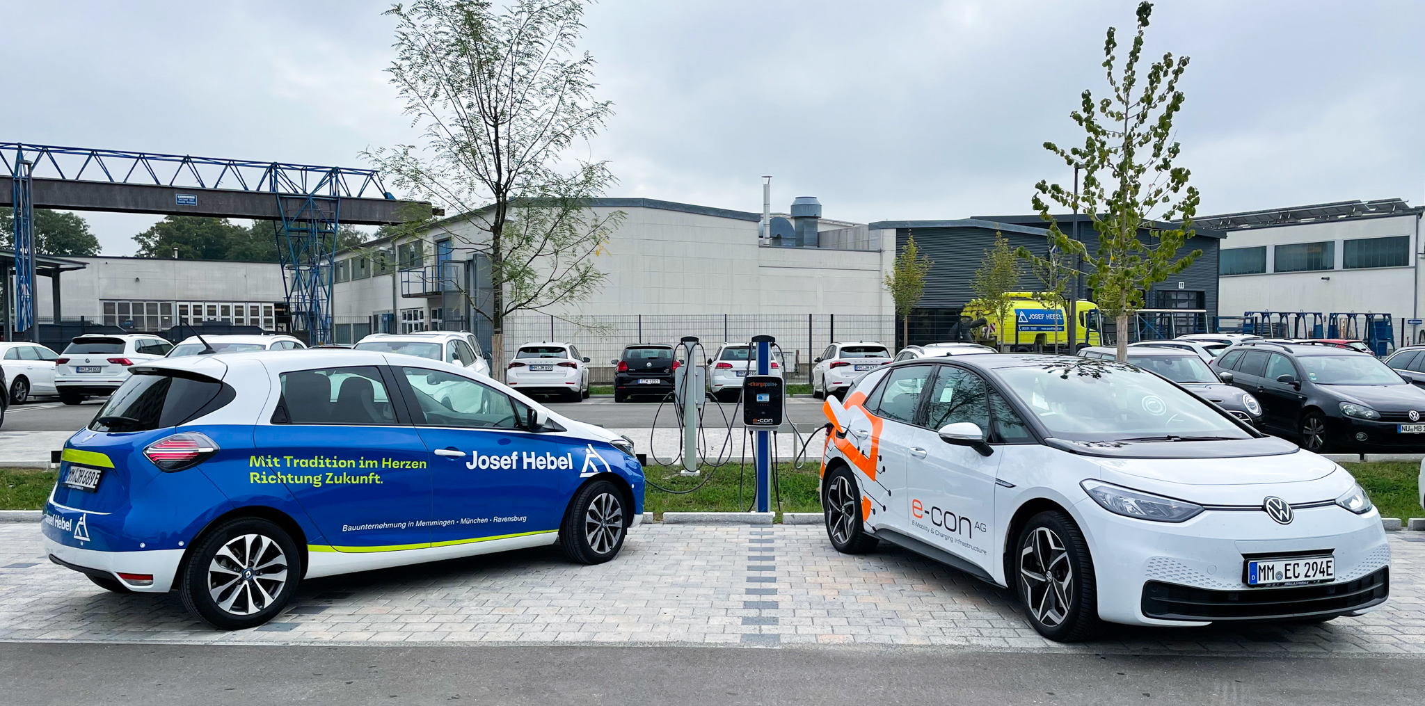Bei Josef Hebel liegt der Fokus nicht nur bei Bauprojekten auf dauerhaften und nachhaltigen Lösungen. Der Wert „Nachhaltigkeit“ ist für die gesamte Unternehmung und den Markenkern ausschlaggebend, um die Erfolgsgeschichte langfristig fortschreiben zu können. Aus diesem Grund entschied sich die Firma Josef Hebel nun auch bezüglich der Mobilität für eine ressourcenschonende Lösung. Am Hauptsitz in Memmingen stehen für Dienstfahrzeuge ab sofort 3 Ladestationen mit jeweils 2 Ladepunkten zur Verfügung.